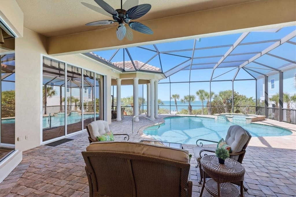 One or more photo(s) has been virtually staged. Exceptional, turnkey furnished Gulf-front estate on Manasota Key offering rare privacy, sweeping water views, and an elevated coastal lifestyle. Built in 2005 by renowned luxury builder Arthur Rutenberg, this meticulously maintained 4-bedroom, 5-bath residence spans 3,860 square feet and reflects the craftsmanship, thoughtful design, and quality construction discerning buyers expect. Perfectly positioned along the shoreline, the home captures breathtaking Gulf views and unforgettable sunsets from multiple living spaces and expansive outdoor areas. Enjoy the rare luxury of private beach frontage, where peaceful mornings and spectacular evening skies become part of everyday life. Designed with durability and peace of mind first, the elevated main living level and pool area enhance storm resilience. The property experienced no structural damage during recent storms, underscoring the strength of its construction and careful upkeep. Recent improvements include a new tile roof (2026), new hot water heater (2026), new appliances (2026/2025) and two newer A/C systems (2024). Inside, light-filled interiors and generously sized living spaces create an inviting atmosphere for both everyday living and entertaining. Architectural details, open gathering areas, and seamless indoor-outdoor transitions make the home ideal for relaxed beachfront living. Impeccably cared for, the property presents a rare opportunity for a the new owner to personalize interior finishes while benefiting from an exceptional structural foundation. This is more than a home - it is a private Gulf-front retreat offering serenity, security, and timeless coastal elegance in one of Southwest Florida's most desirable locations.